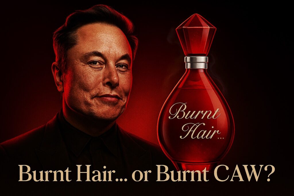 What if it never said “Burnt Hair”? Look again. The font style clearly reads:Burnt CAW 🐦⬛ Coincidence? Maybe not. 🔥 “Burnt” = Token burn🐦 “CAW” = The mysterious 666trillion supply meme Elon launched a perfume…But what if he was sile... -