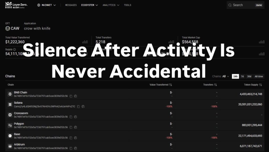 Silence After Activity Is Never Accidental — And Now, the Messages Are Zero According to LayerZero Scan, CAW’s cross-chain messages have now dropped to zero. Not declining.Not slowing down.Zero. Just days ago, CAW was actively moving acr...